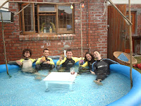 Party at Rob, Fro, and Rosie’s. They organised a pool party where they bought a portable pool for the back garden. Had sangria in the pool wearing wetsuits (cause of the windchill factor). Braaied up a storm (with Fro as braai master). Had an energetic ‘Fill Up 97’ reunion jam with Rob, Fro, and Melike, and then danced the night away. Great fun!