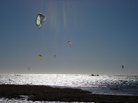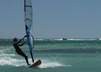 Some features: This spot is a a wind/kite-surfer's haven, so we were in the company of many foreign (mainly German and English) tourists who had come here with that in mind. We all had a go at windsurfing the first afternoon, hiring our boards, with Darren and Ilse both trying for the first time. Next day with the wind died down we spent sandboarding followed by windsurfing (Nick kitesurfing) and that eve went for sundowners in the dunes. We spent evenings enjoying sundowners either overlooking the beach or on top of the dunes. This spot was really great - so we made sure to book a spot here for our return journey to Perth from Monkey Mia, affording us the opportunity for more great windsurfing!