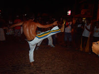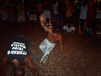 The Place: In Itacaré (Bahia) watched some brilliant capoeira of the group ´Tribo´ run by Mestre Jamaica. Played in 4 of the rodas. (Which they have almost every second night). Trained daily on the beach with Mestre Jamaica which was a great experience, doing the movements facing the trees, seeing palm trees instead of walls, and ending the classes by practicing back somersaults into the soft sand.