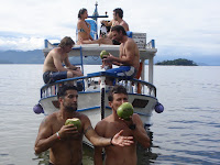 The Place: With 50 main Islands and 43 main beaches (excluding the beaches on the islands), Paraty is a great place to travel by boat, which is what we did. Spent a sunny day going from island to island, snorkelling a bit to see the huge starfish, collecting coconuts to drink their milk and messing about with dives, jumps and somersaults off the top of the boat into the clear sea water.