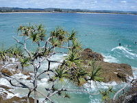 Some features: Stayed in a cool backpackers called the Arts Factory which has numerous types of accomodation including teepee's and island retreats (canvas shelters with platforms overlooking a small lake). We were lucky enough to be there over whale watching season and were able to spot about five or six whales, two being mother and calf, as well as two dolphins making their way along the coastline. Cruised around town on hired bikes and found more beaches to visit. Went surfing at cosy corner on Tallow beach. Took wine, cheese and biscuits down to the beach for sundowners.