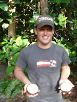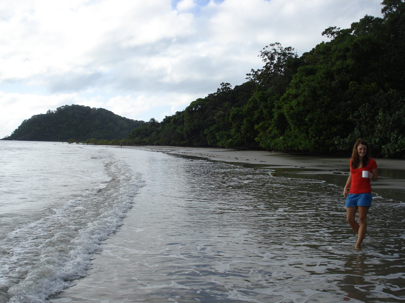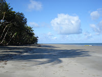Some features: Had to cross a ferry and drive for about an hour through dense forest to arrive at the accommodation. The place we stayed was right on the beach so we could walk out onto it first thing with a cup of coffee. Signs warn not to swim in the summer months due to the stingers (jellyfish). Had a shallow swim (though it was hot, it wasn't yet summer) and spotted a turtle popping his head out the water about 20m out from me. Later we visited a few beaches close by which warn against the Estuarine crocodiles which live in surrounding waters and mangroves. Kayaked to coconut beach, a pristine beach where as its name says, hundreds of coconuts lie on the beach amongst the palms, some already sprouting new trees. Liz while on her kayak got bumped by a big turtle which gave her a scare while our guide told us stories of the crocodiles which live in the creeks, the males of which swim out to sea to find a mate in nearby creeks sometimes kicking out the local males. Apparently, according to our guide, 9 times out of a 10 a shark will kill a croc if they meet out at sea. The shark will go for the crocs tail leaving it defenseless. Not sure if true but made for some interesting listening!
