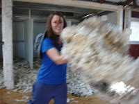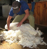 Some features: We set around 15 yabby traps and pulled in around five per trap, +-75. I got to try my hand at sheering a sheep under Armand's guidance -or at least I sheered one of its sides. Was very interesting to see how it's done properly with the sheep pinned down in the right holds without moving a muscle while it's entire fleece is taken off in minutes. Liz the roustabout showed me how the fleece is gathered up and spread out on the table in one swoop.