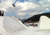 Some features: We spent a good 3 days snowboarding (Liz, Cath, Craig, Alison & I) and skiing (Tim, Hayley and James) in and around the areas of Les Gets and Morzine. The area has a huge selection of blue, red and black slopes all interconnected by chair lifts (thank goodness not button lifts or T-bars). We were particulary lucky to have good snow accompanied by sun which meant glorious days on the slopes. It took a while for us to find our feet but after a day of practicing on one side of the range we found that the rest of the slopes became much more accessible for days 2 and 3. Making sure we boarded and skiied till we were wrecked we headed back to our chalets for some unforgettable gourmet meals (provided) and a bit of jacuzzi goodness on day 2. The town had numerous festivities going on including jumping freestyle competitions and grafiti artist displays. For Apres-ski beers we headed to a great little Canadian bar called the Black Bear which featured an enormous taxidermied moose head inside. An awesome weekend was had by all with good friends, great runs, many wipeouts and thankfully no major injuries.