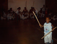 The Place: In Itacaré (Bahia) watched some brilliant capoeira of the group ´Tribo´ run by Mestre Jamaica. Played in 4 of the rodas. (Which they have almost every second night). Trained daily on the beach with Mestre Jamaica which was a great experience, doing the movements facing the trees, seeing palm trees instead of walls, and ending the classes by practicing back somersaults into the soft sand.